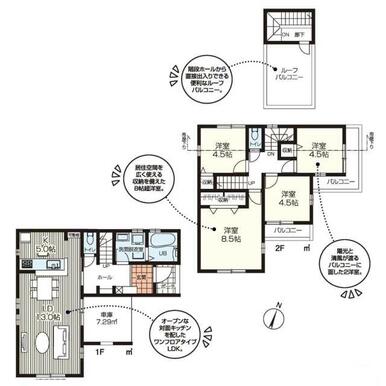 | 設備 | システムキッチン 床下収納 モニタ付インターホン ディンプルキー 浄水器 浴室乾燥機 追焚機能 シャワー付洗面化粧台 人感センサー付照明 ダウンライト 照明器具 | ||